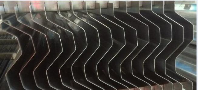 除霧器及輔助系統(tǒng)通常由多折向波形板、卡具、支撐梁、壓板以及沖洗噴嘴、沖洗管道、管道支撐、管卡等部件組成。綜合考慮除霧效率和壓降因素,除霧器常采用兩級(jí)結(jié)構(gòu)。除霧器的布置形式最常見的有平板式布置和屋頂式布置。